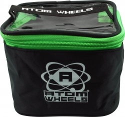Made of a durable, nylon outer shell with a sturdy cloth handle and heavy-duty zipper, this handy bag will hold up to 8 wheels. The clear plastic top lets you see at a glance what you're packin'!