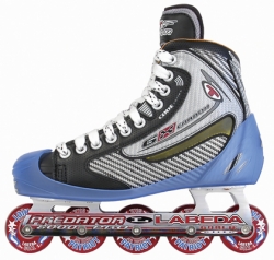 GX Carbon boot, Labeda Predator Pro 5-wheel frame, Labeda Patriot Pro 59mm wheels, Bevo ABEC 9 bearings.